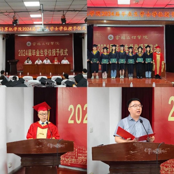 副院长张雪亚宣读《星空体育官网登录平台2023届毕业生学士学位授予决定》。教师代表陈冬老师代表学院全体教师向毕业生表达了最热烈的祝贺和热切的期待。他勉励各位毕业生们在面对外部环境的不确定性时既要保持战略定力,也要主动拥抱变革,勇立潮头、乘风破浪,在“博文明理、厚德尚能”的校训指引下明确发展方向、探求人生前行的道路。在校生代表2023级人工智能1班骆灵同学表示学长学姐们在课堂、实验室、图书馆付出和努力的身影将激励着一届又一届计算机学子继续前行,追寻梦想。毕业生代表2020级计算机科学与技术1班秦新宇同学回顾了大学四年的成长与收获,表达了对学院、老师、同窗的感激之情。并向毕业生们发出邀约,今后不管在哪里,都会牢记教导,做怀抱梦想又脚踏实地、敢想敢为又善作善成的宝大人。