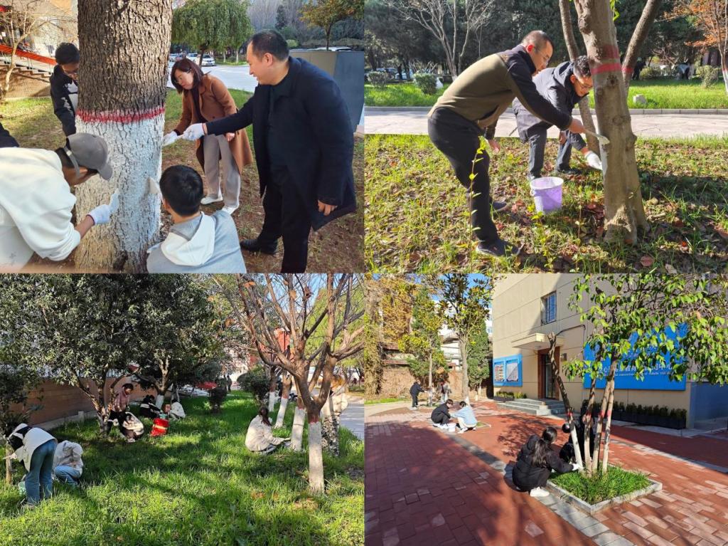 11月21日-11月26日,星空体育官网登录平台学生志愿者化身绿树卫士在校园进行树木刷白,赶在全国大范围降温前,为校园绿树穿上抵御虫害的“保暖衣”。