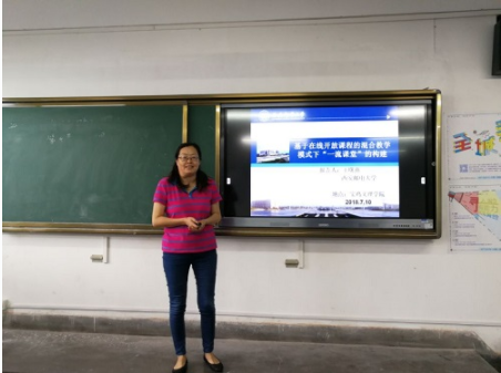 7月10日,西安邮电大学教务处副处长王曙燕教授一行应邀到我院进行混合式教学模式的指导与交流。 为加强学院教育教学改革、促进教师教学业务水平、强化内涵建设、提高教学质量,我院邀请王曙燕教授来校作了题为“基于在线开放课程的混合教学模式下‘一流课堂’的构建”的报告。